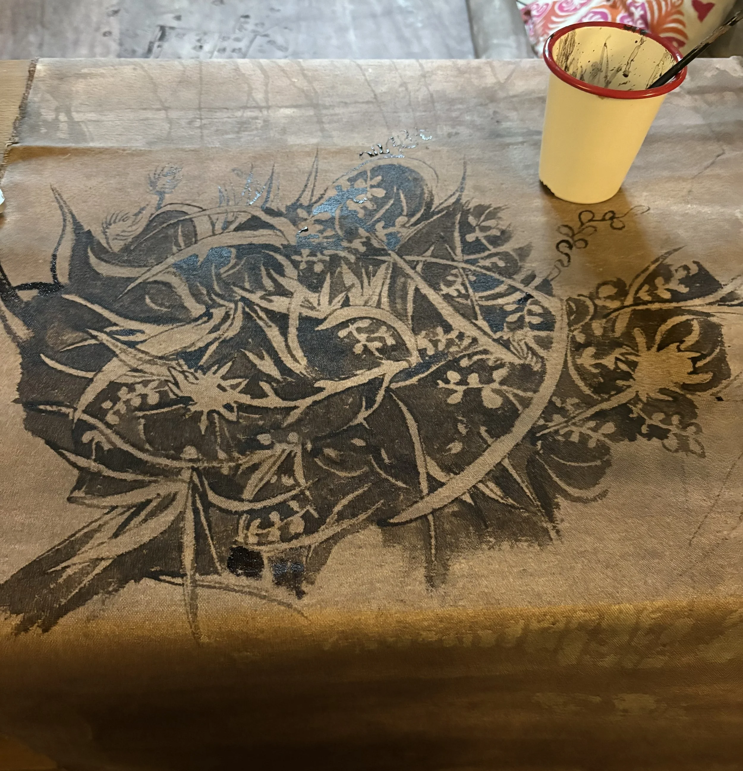 (BTW we have a great online course - Print Your Own Wallpaper - this was a bit like that except much more relaxed “shall we add a bit of moss here?”etc