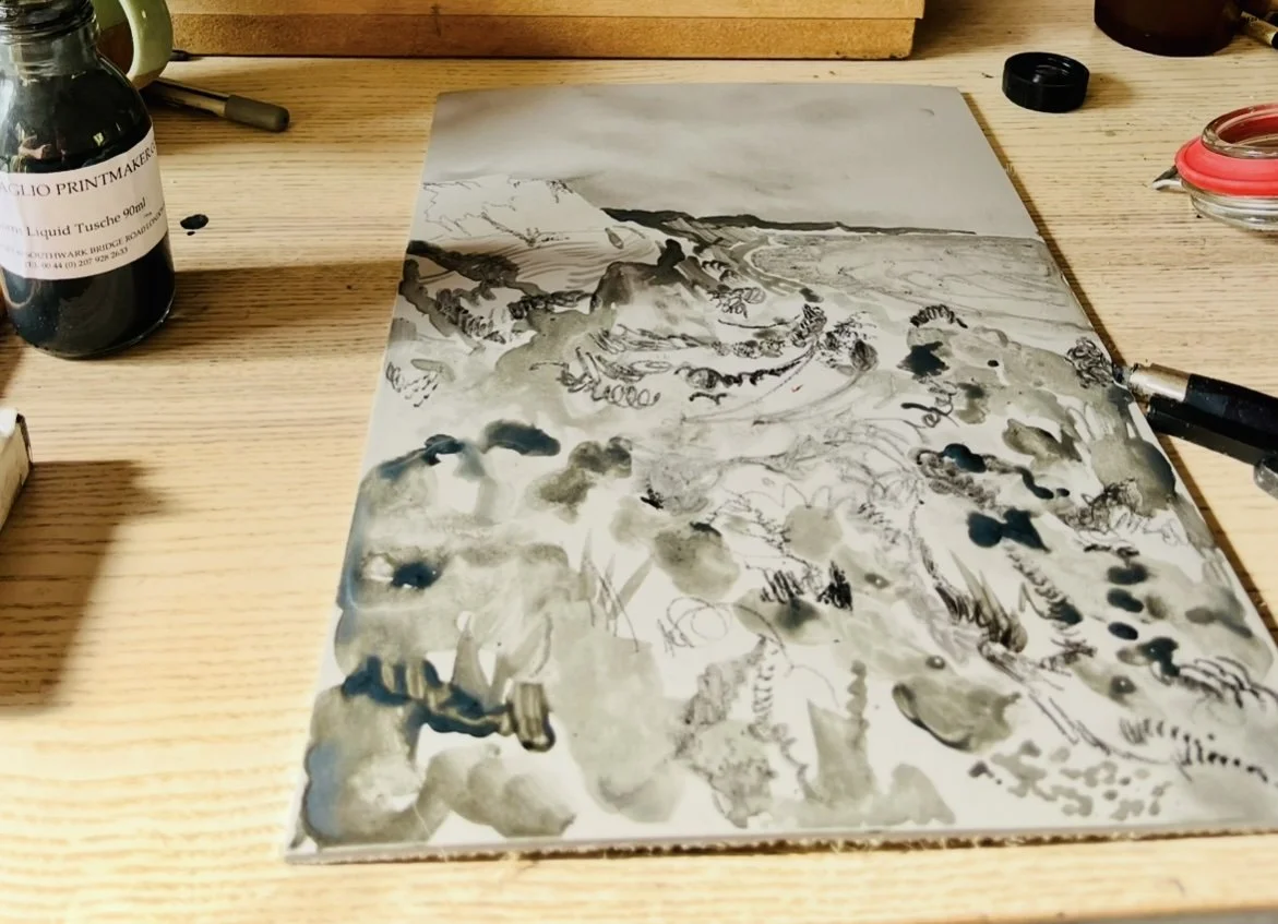Here are some additional photos showing the lithography on lino printing process