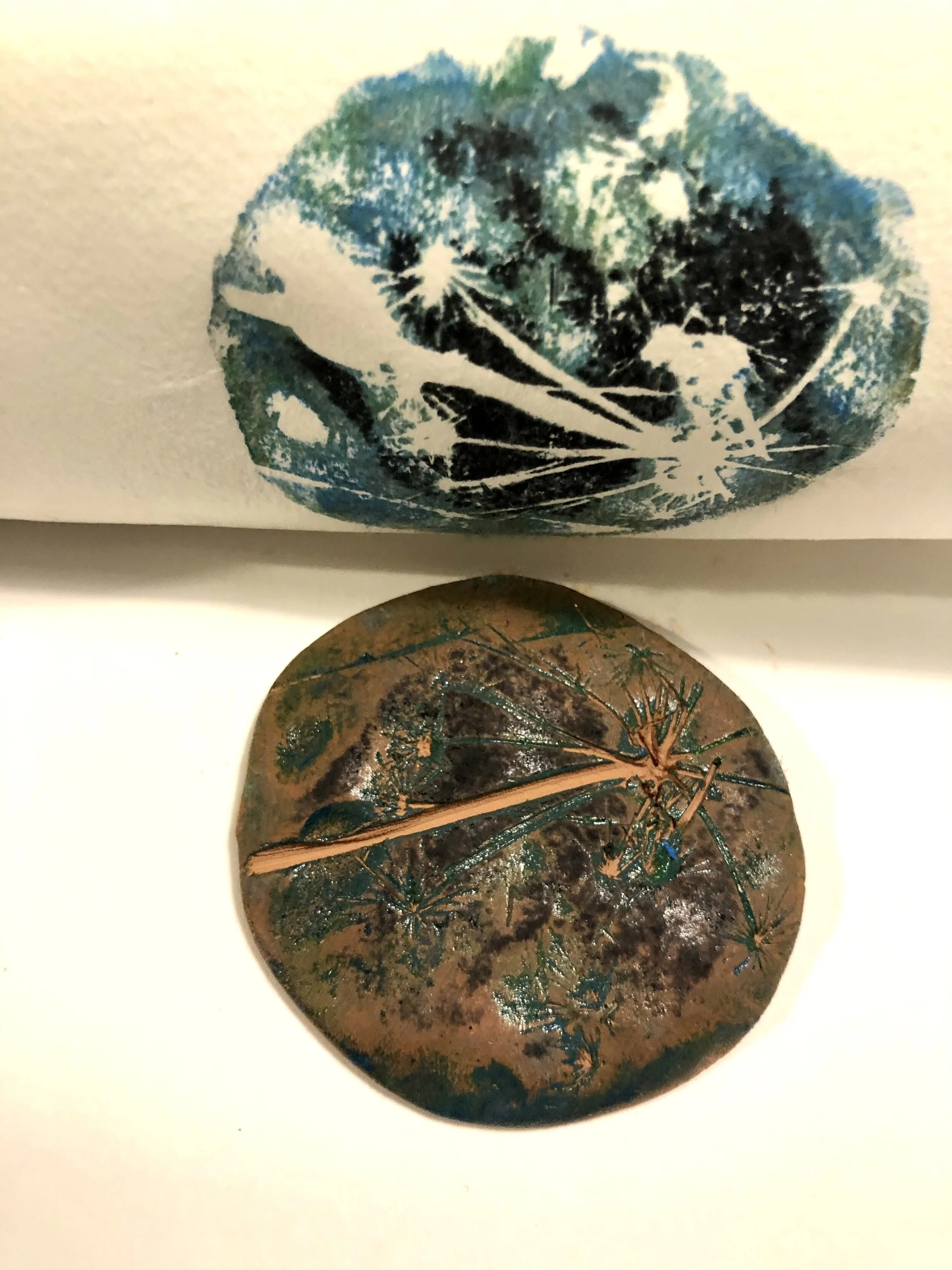 With school groups from Tipton, Newton Poppleford and Sidmouth, we walked and created linear maps, tried forest bathing, printed with natural materials we found on our walks and devised prompts to leave in the public Creature Nature Boxes in Harpford Woods.