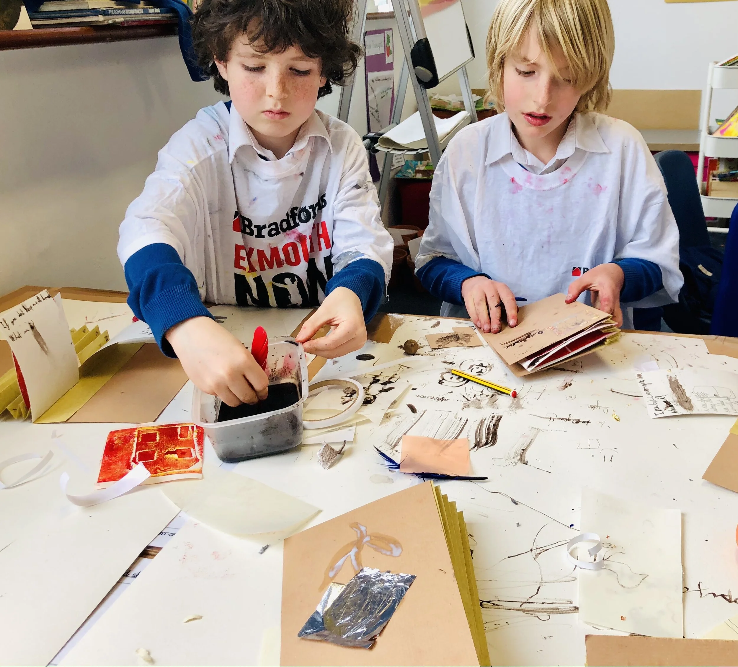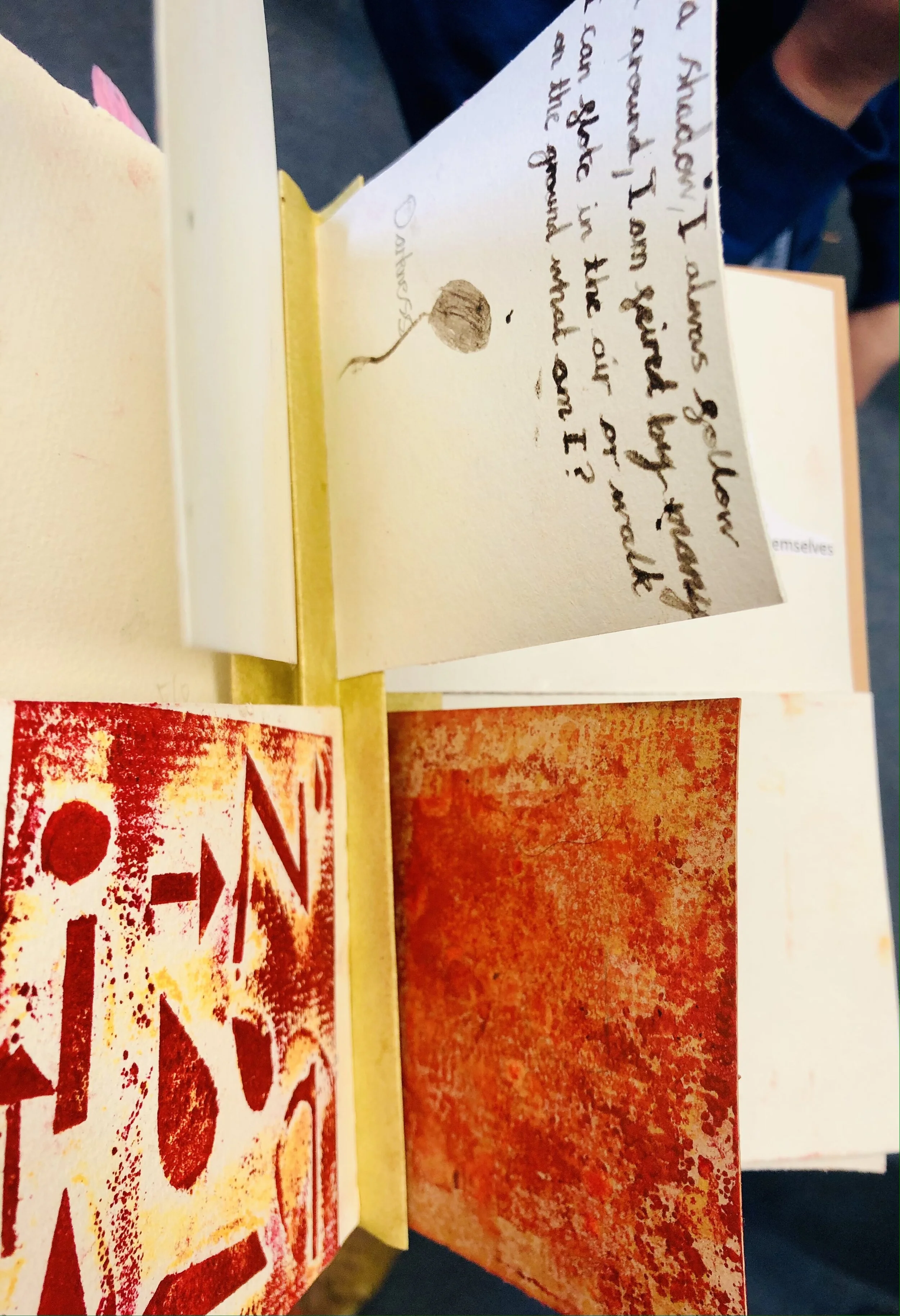 I led a workshop with Year 3 & 4 pupils to explore the materiality of books. The workshop focused not only on printing and using a press, but the physical creation of a book and investigating how literature and text can be enriched by the physical qualities of a book.